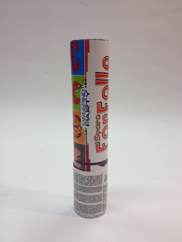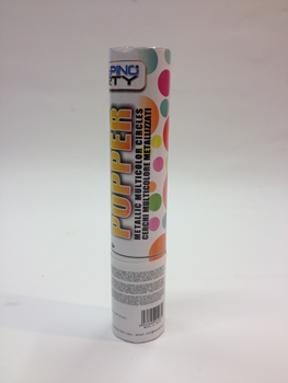 Coriandoli e stelle filanti colorati metallizzati. Funzionamento a molla. Altezza di lancio: 2/3 metri