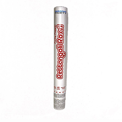 Coriandoli rossi a forma di rettangolo. Altezza di lancio: 7/8 metri