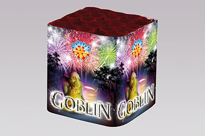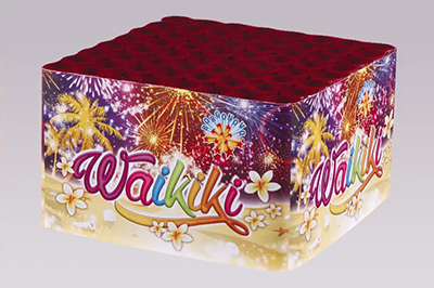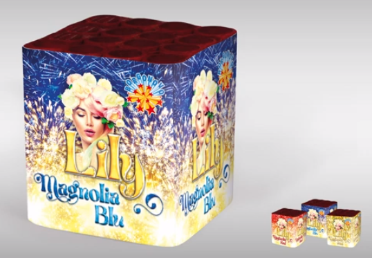 133 colpi di grosso calibro (dritti e a ventaglio, Ø 25/30). Composto da 5 batterie: effetti assortiti con palme / dalie / cracker / peonie lamp. / salice oro