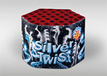 25 lanci (Ø 16). Aperture rosse, verdi e viola con crisantemi argento e stelle bianco lampeggiante